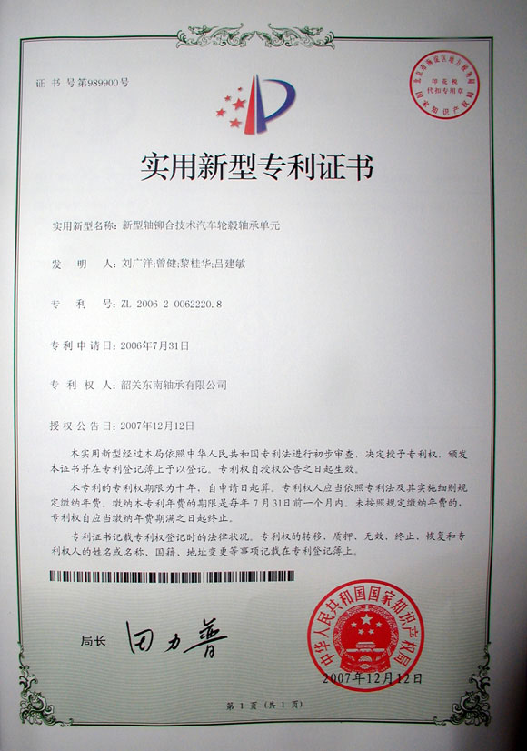 新型軸鉚合技術(shù)汽車(chē)輪轂軸承專(zhuān)利